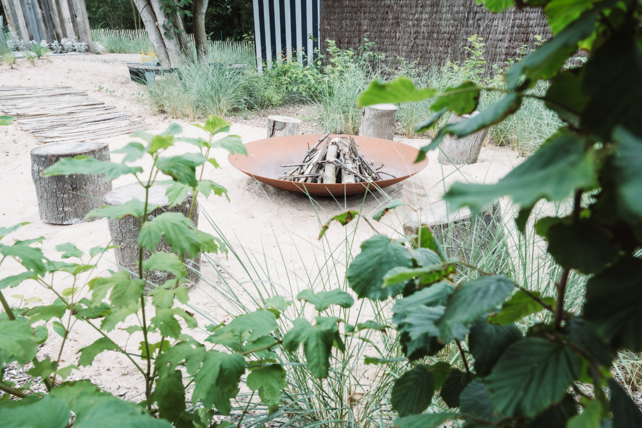 We hebben speciale plekken gecreëerd om te kunnen genieten van bijzondere momenten, zoals rondom een kampvuur of op een tuinbank onder een boom.