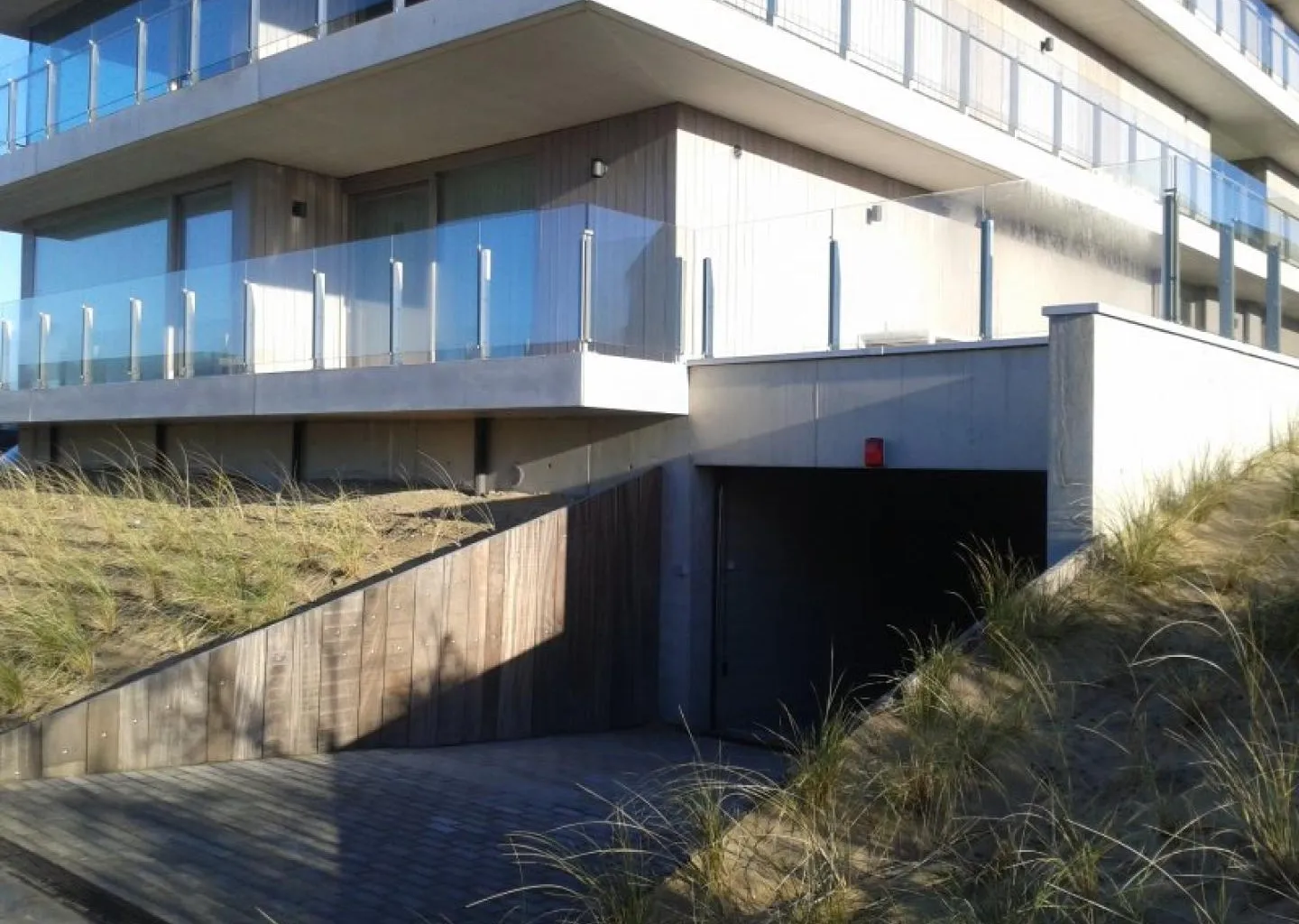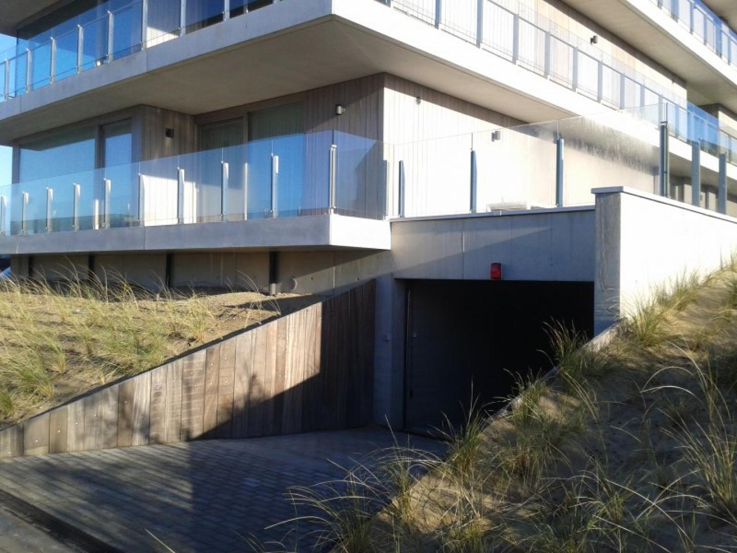 Residentie Duindistel - Aanleg van tuin rondom nieuwbouwresidentie. "De prestigieuze ligging, op de rand van het strand en de zee te Oostduinkerke en de toparchitectuur van de hand van architect Marc Corbiau maken dit project tot een unicum aan onze kust."